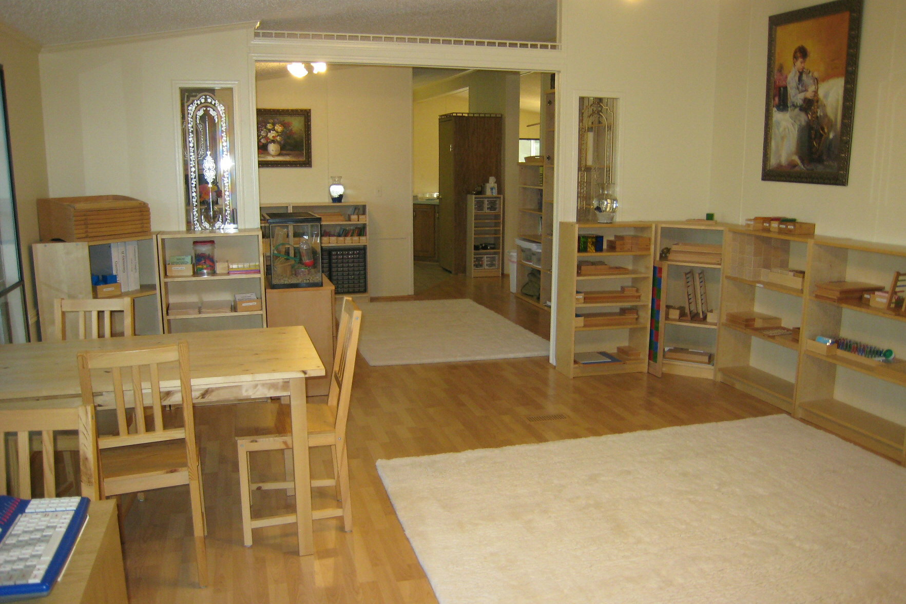 We have open, spacious classrooms filled with natural light including a screened porch for working outside, large outdoor play area, and covered outdoor area.