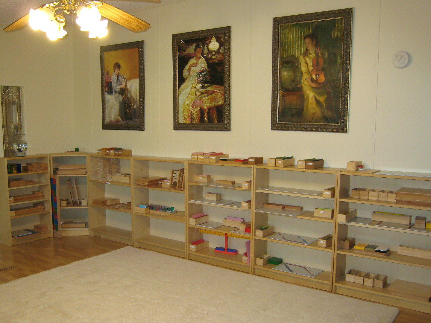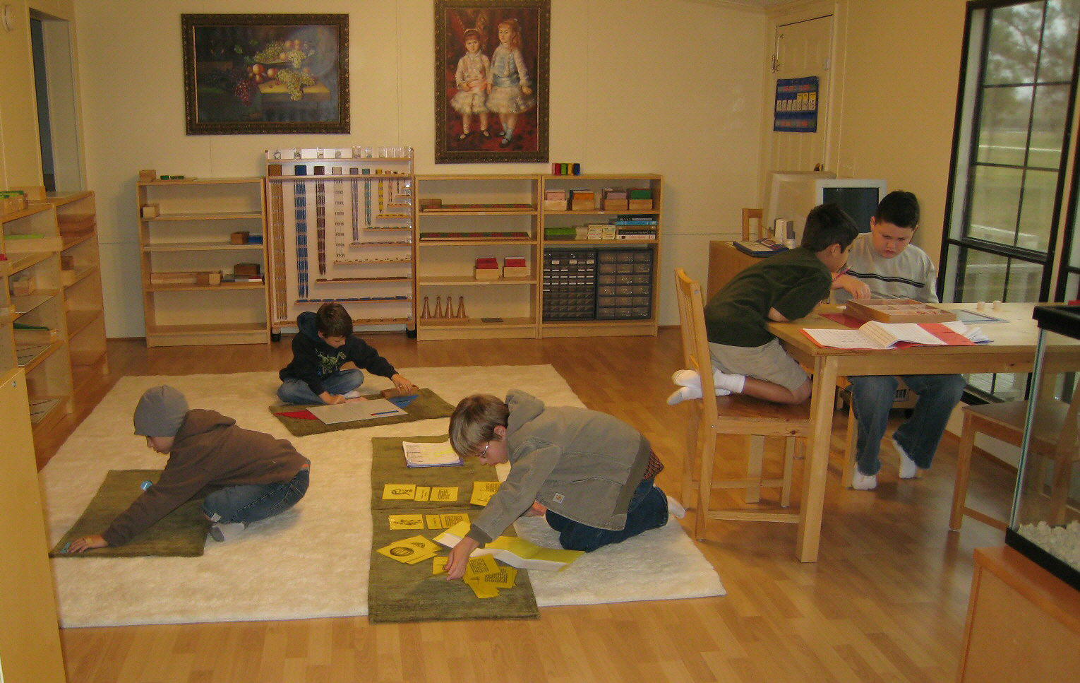 Students participate in individual and group lessons. Individual lessons allow children to work at their own pace in mathematics and language, while group lessons in the cultural subjects (history, botany, zoology, geograhpy) give students the opportunity to gain communication skills necessary in cooperative learning.